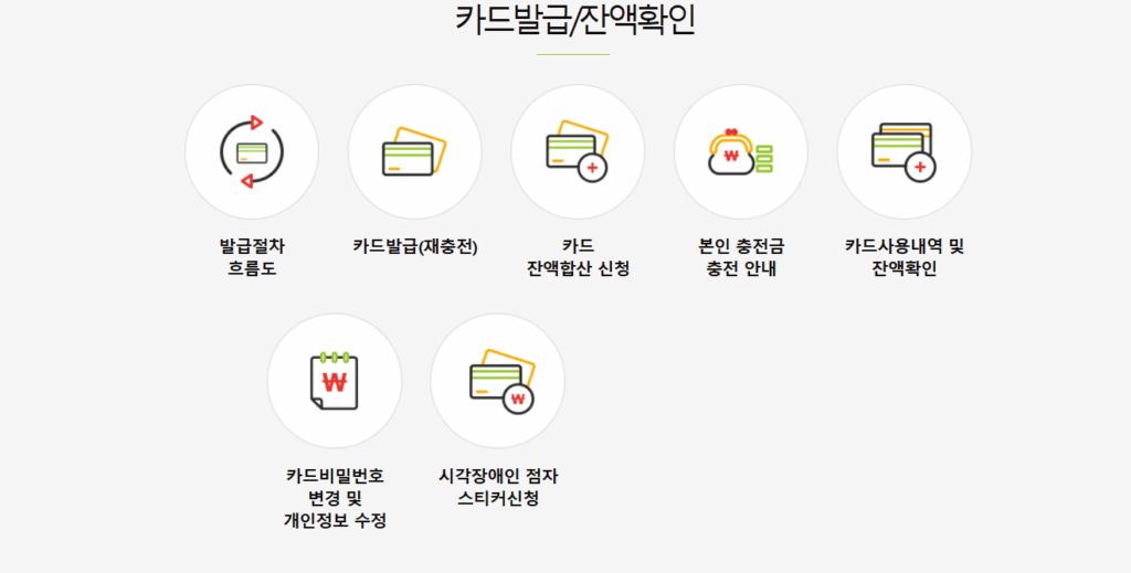 - 합산 신청 : 여러 장의 카드 잔액을 하나로 모을 수 있음 (누리집 또는 주민센터 방문).